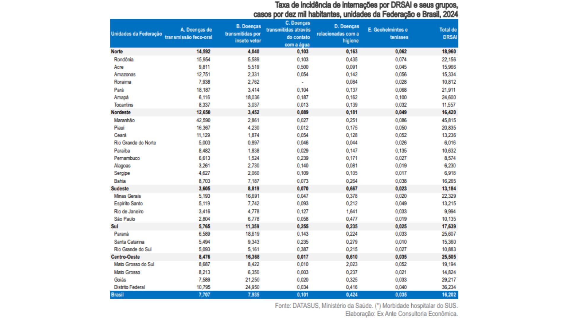 O Maranhão e o Distrito Federal são as unidades da federação em pior situação quanto a internações por doenças relacionadas ao saneamento ambiental inadequado, a cada 10 mil habitantes. Enquanto o estado nordestino conta com uma taxa de incidência nesse recorte de 45,8 casos, no DF o número chega a 36,2.