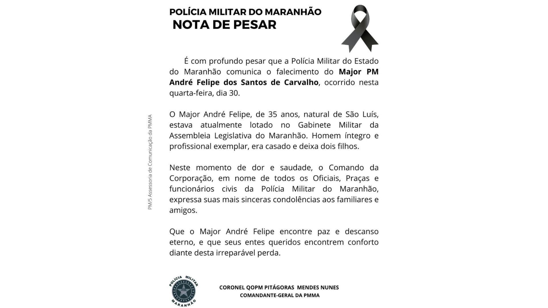 André Felipe era chefe da seção administrativa do Gabinete Militar da Assembleia Legislativa do Maranhão (Alema). Em nota, a corporação afirmou que o militar era um ‘homem íntegro e profissional exemplar’.