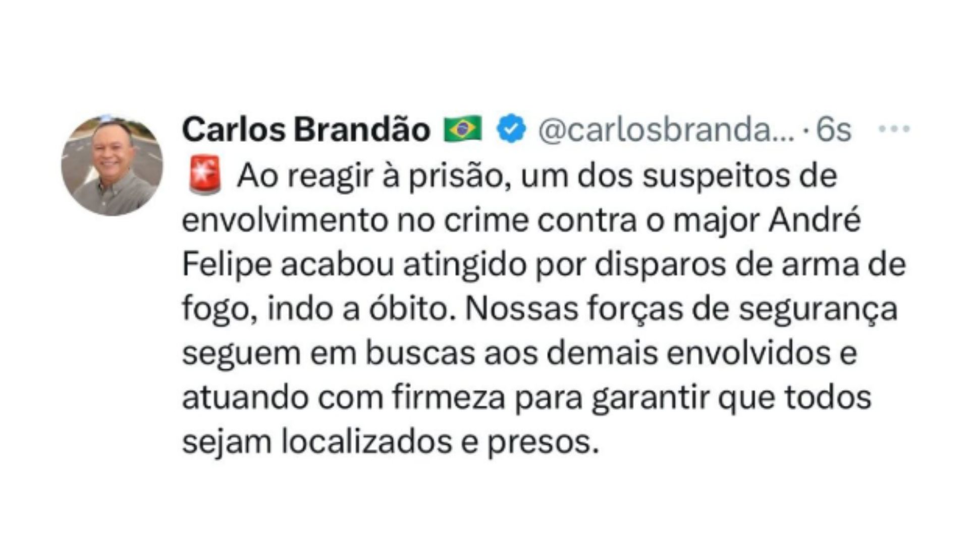 Segundo informações, equipes policiais estavam à procura do suspeito de matar o major André Felipe e, ao ser abordado, Ailton Silva reagiu e houve troca de tiros. O suspeito foi atingido e socorrido pelos policiais, mas acabou indo a óbito no local.