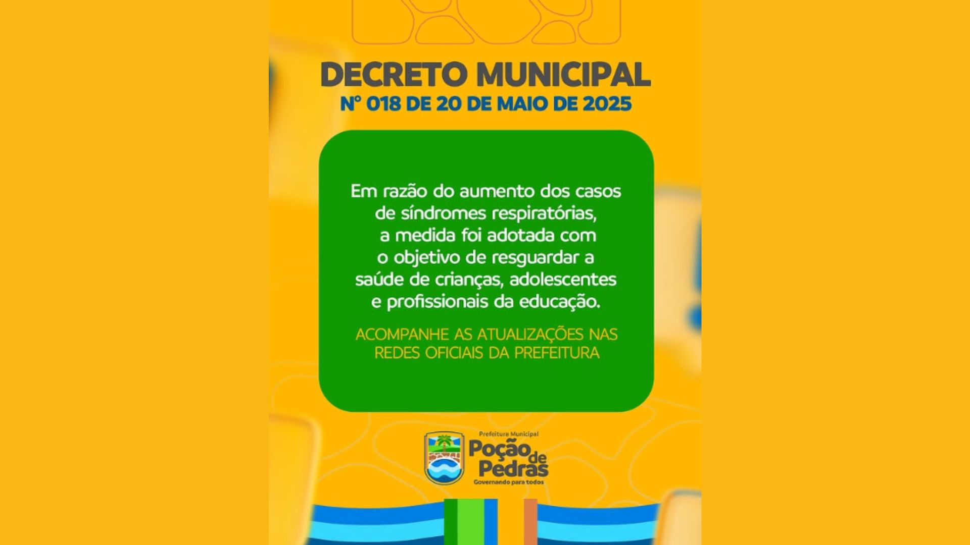 Já a Prefeitura de Poção de Pedras suspendeu as aulas nas escolas públicas do município por sete dias, a contar dessa quarta-feira (21), devido o aumento dos casos de síndromes respiratórias.