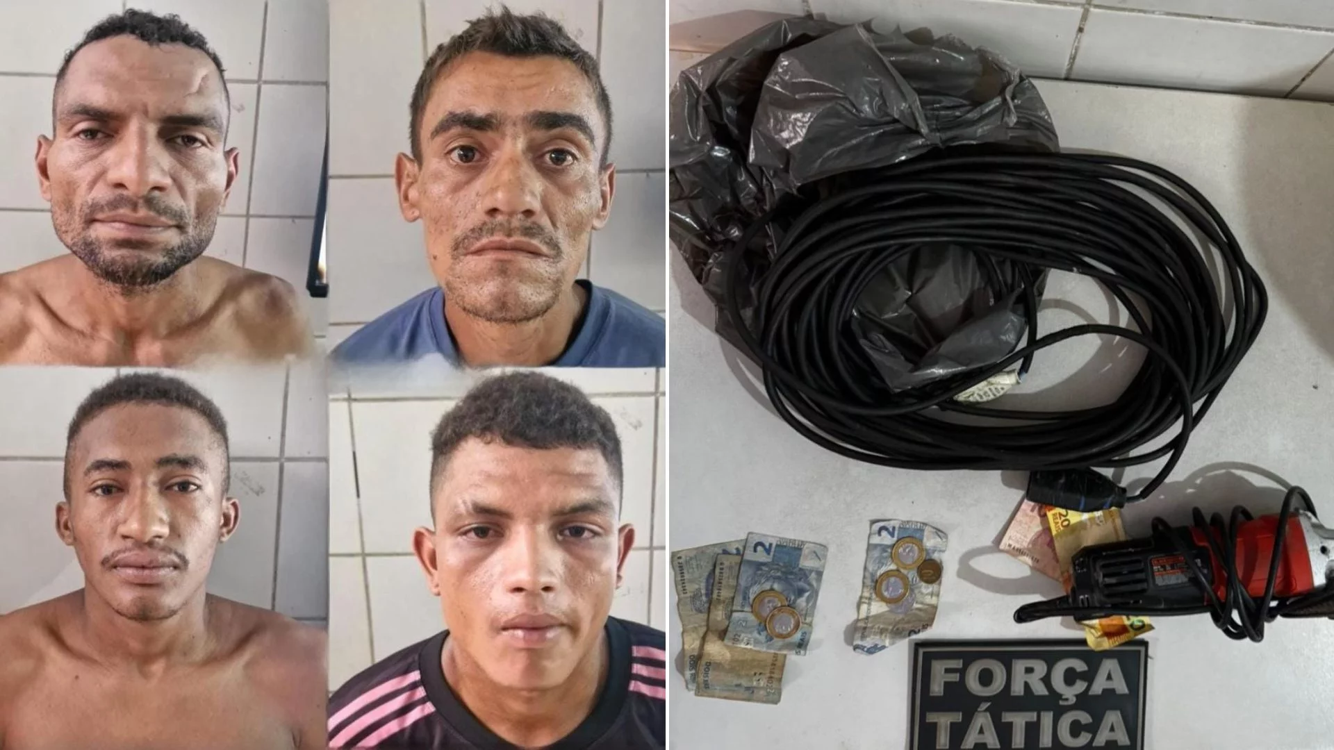 Os suspeitos foram identificados como Marcelo da Silva, Antônio José da Silva Conceição, Ronaldo do Nascimento Freire e José Antônio de Carvalho Andrade. Segundo informações, os criminosos invadiram a oficina e subtraíram diversas ferramentas, incluindo uma lixadeira e uma furadeira. Além disso, eles revistaram os veículos que estavam guardados no local.