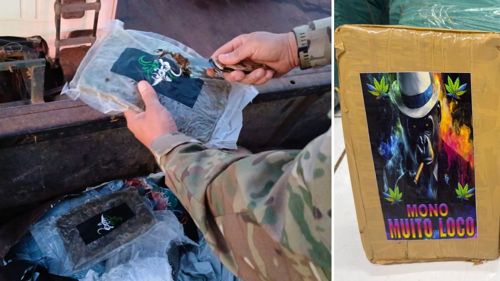 O veículo foi interceptado por volta das 17h25, no quilômetro 217 da rodovia federal. Os policiais encontraram 12 fardos grandes contendo centenas de tabletes, que totalizaram 327,95 kg de skunk e 34,26 kg de crack.