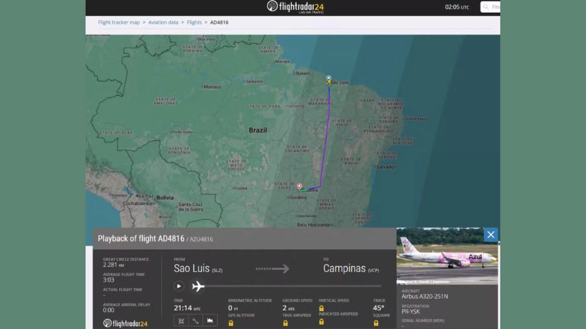 Foto: FlightRadar24/Reprodução