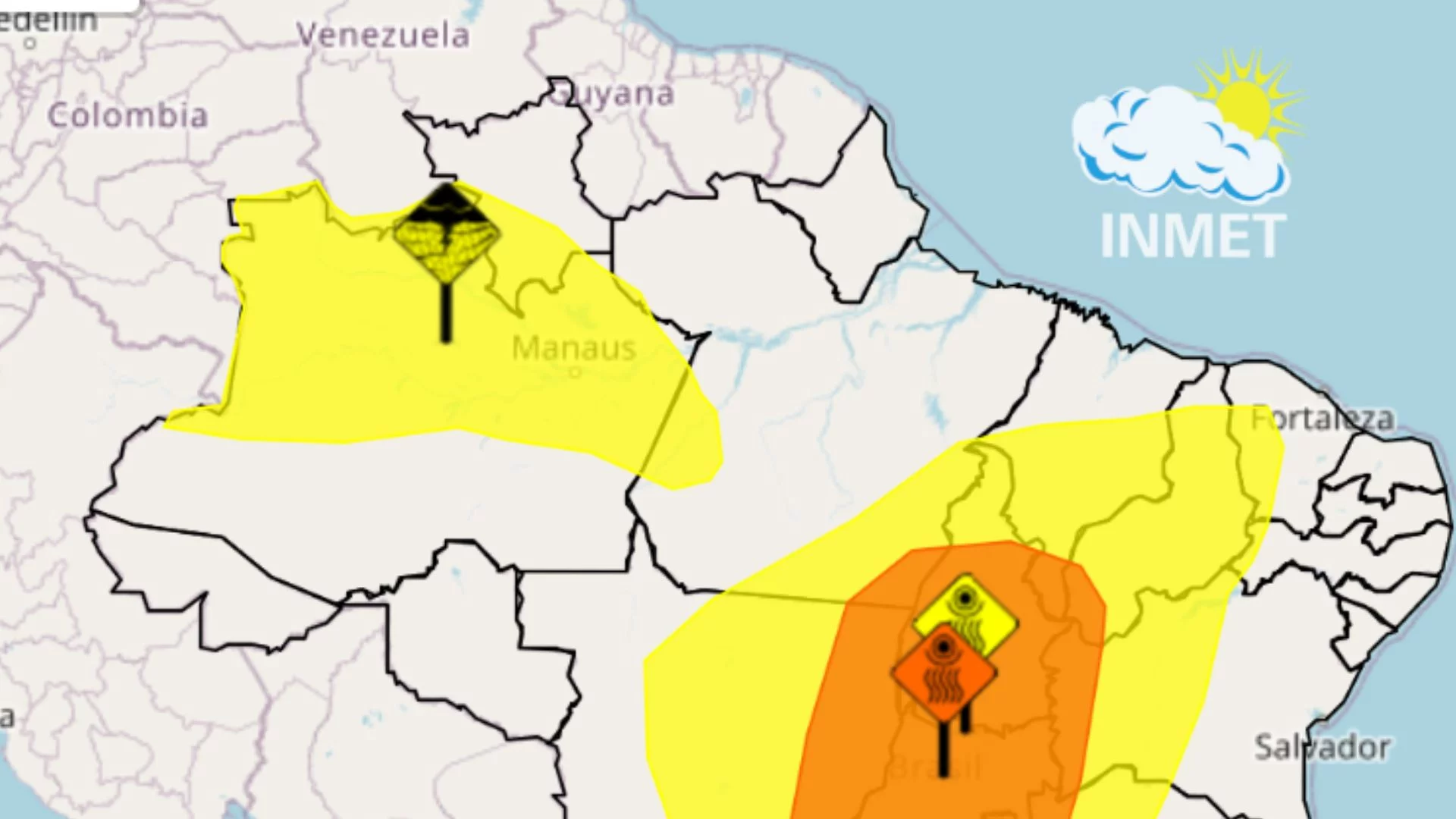 O alerta laranja, de risco potencial, vale para quatro cidades: Alto Parnaíba, Balsas, Riachão e Tasso Fragoso. Já o alerta amarelo, que indica atenção para condições meteorológicas potencialmente perigosas, abrange 101 municípios do estado, incluindo Açailândia, Imperatriz, Timon, São João dos Patos e Barra do Corda.