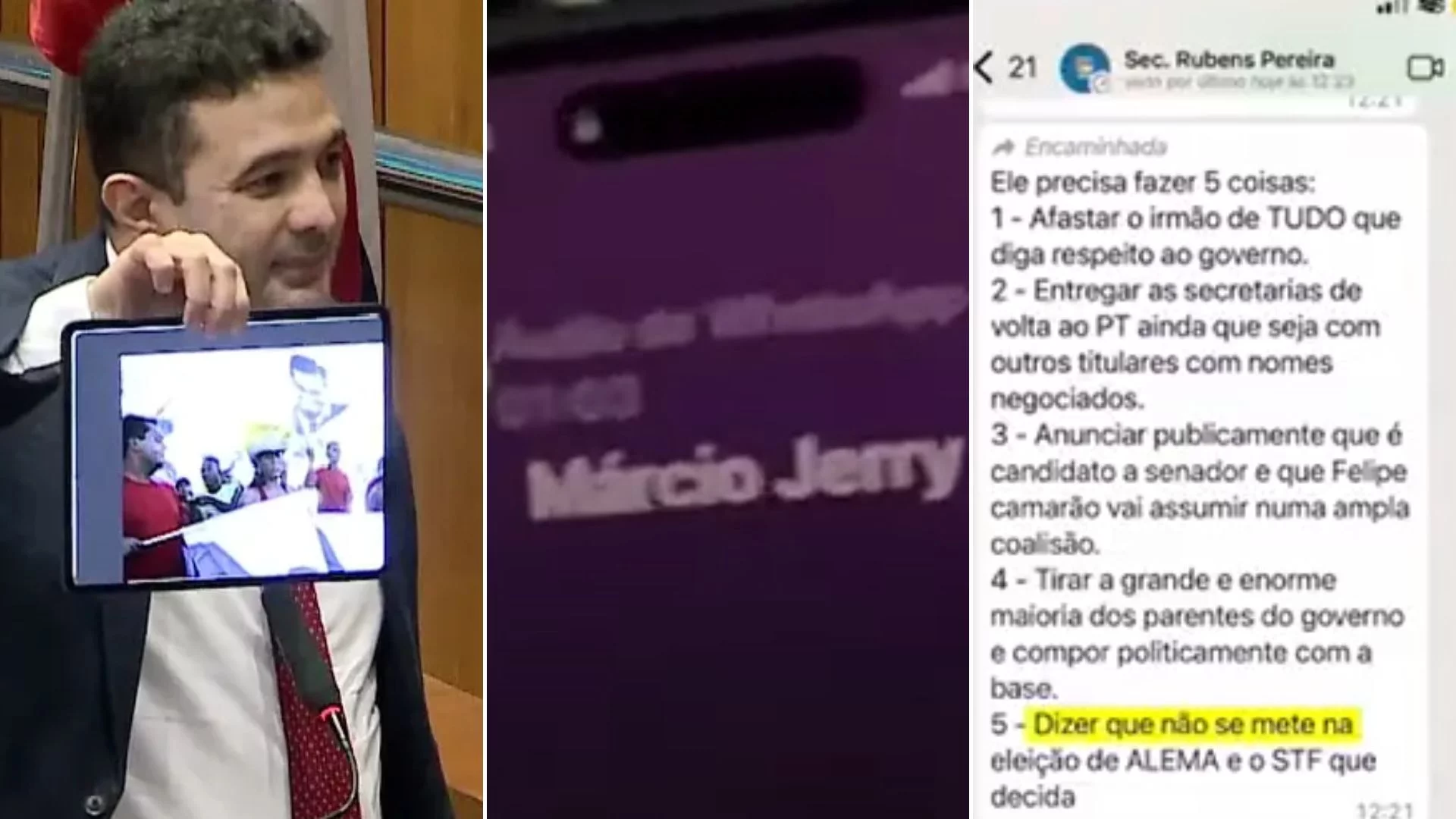 O deputado estadual Yglésio Moyses (PRTB) exibiu, nessa terça-feira (21), na tribuna da Assembleia Legislativa do Maranhão, áudios atribuídos a figuras públicas ligadas ao governo federal e ao grupo político do ex-governador Flávio Dino. Os arquivos, segundo o parlamentar, envolvem os deputados Márcio Jerry (PCdoB), Rubens Pereira Júnior (PT) e o secretário executivo do Ministério do Esporte, Diego Galdino, e são alvos de uma investigação conduzida pela Polícia Federal a pedido da Mesa Diretora da Câmara dos Deputados.