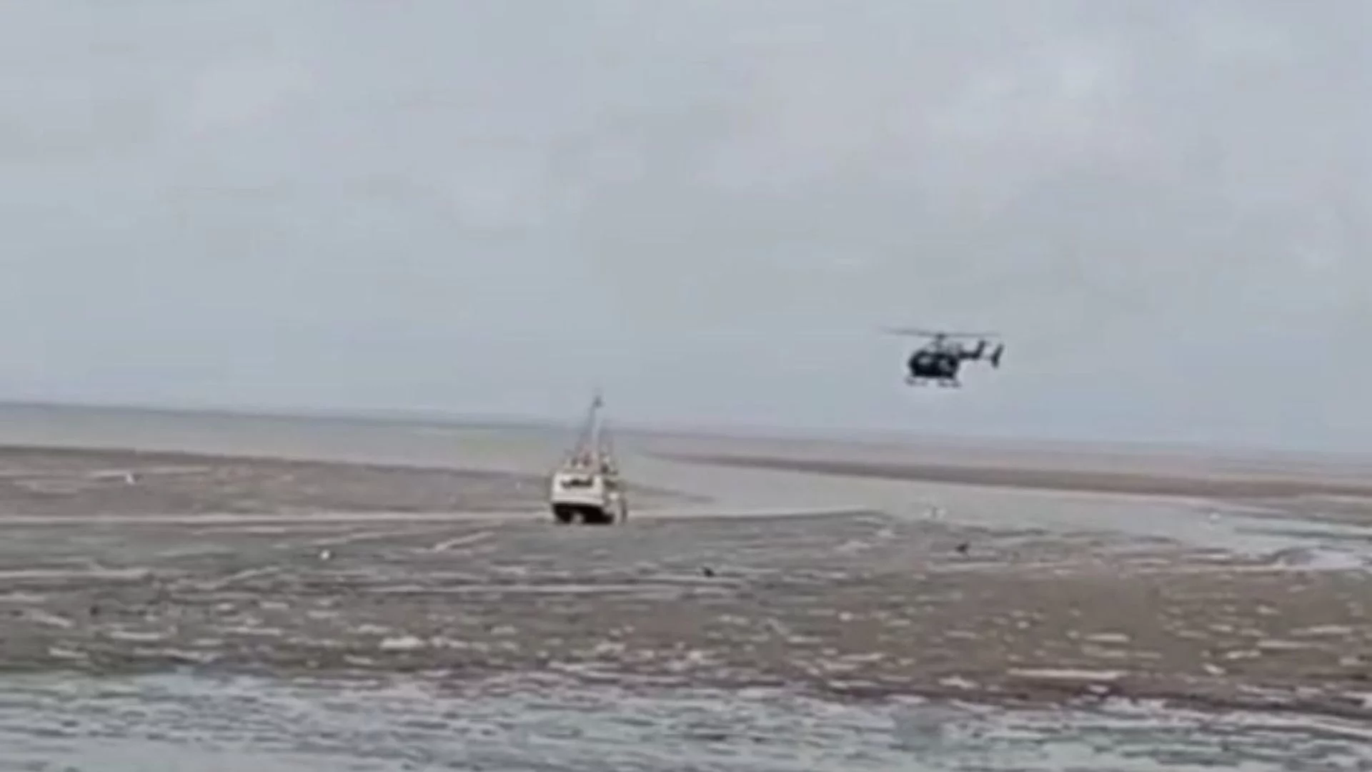 Barco fica preso na maré baixa e impede resgate na Praia Grande