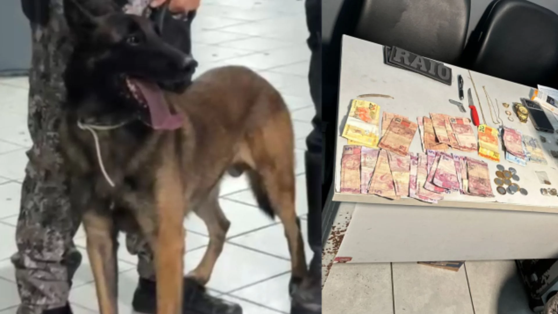 Com a ajuda do cão farejador Flash, os policiais localizaram uma quantidade maior de drogas escondida no imóvel. Além dos entorpecentes, foram apreendidos também dinheiro em espécie, em notas trocadas, e aparelhos celulares.