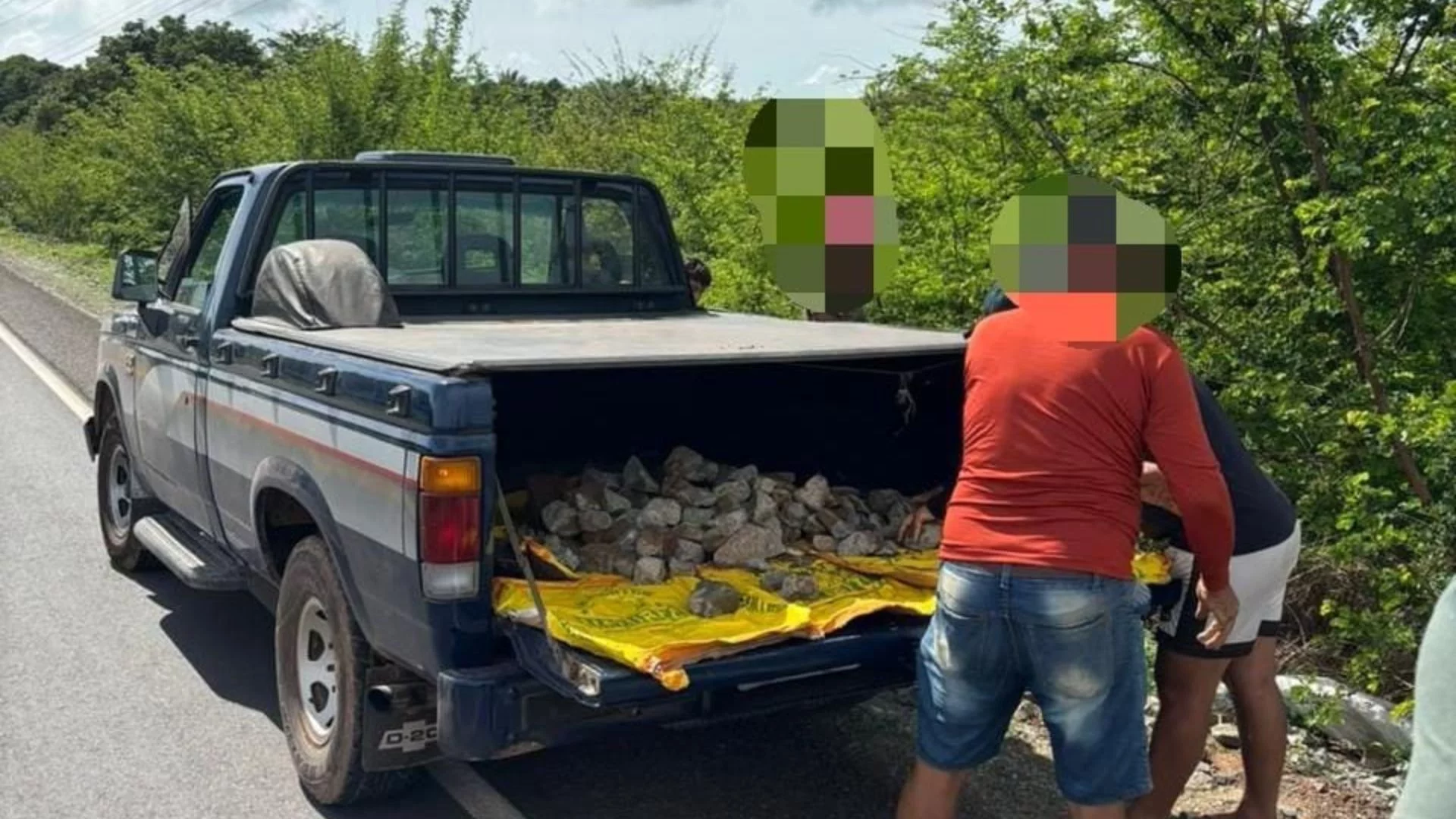 Durante uma diligência de rotina, a equipe policial percebeu a movimentação suspeita e constatou que os homens enchiam uma caminhonete com materiais usados na construção da rodovia, provocando danos diretos à via pública.