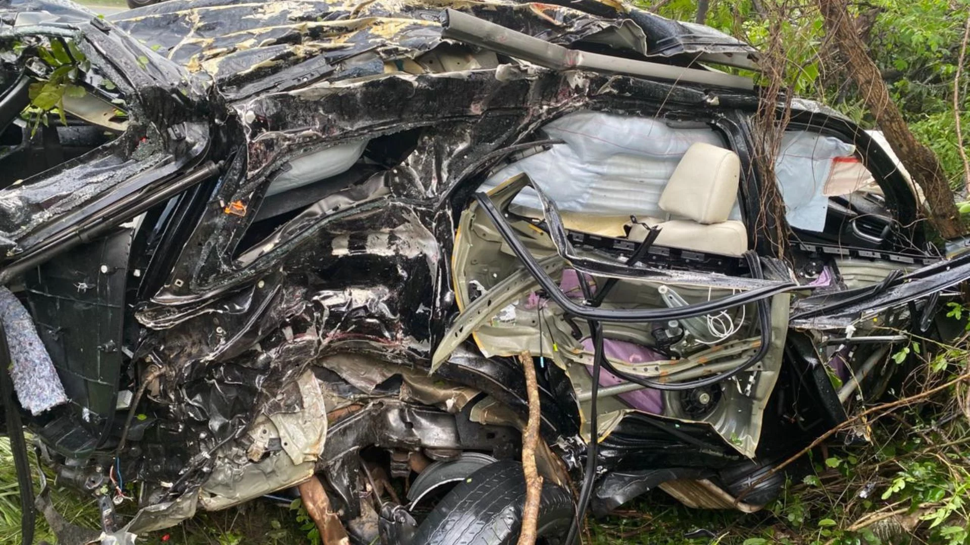 Imagens divulgadas nas redes sociais mostram o carro conduzido pelo empresário completamente destruído após colidir com uma árvore às margens da pista. No vídeo, também é possível ver populares no local e a rodovia com a pista molhada.