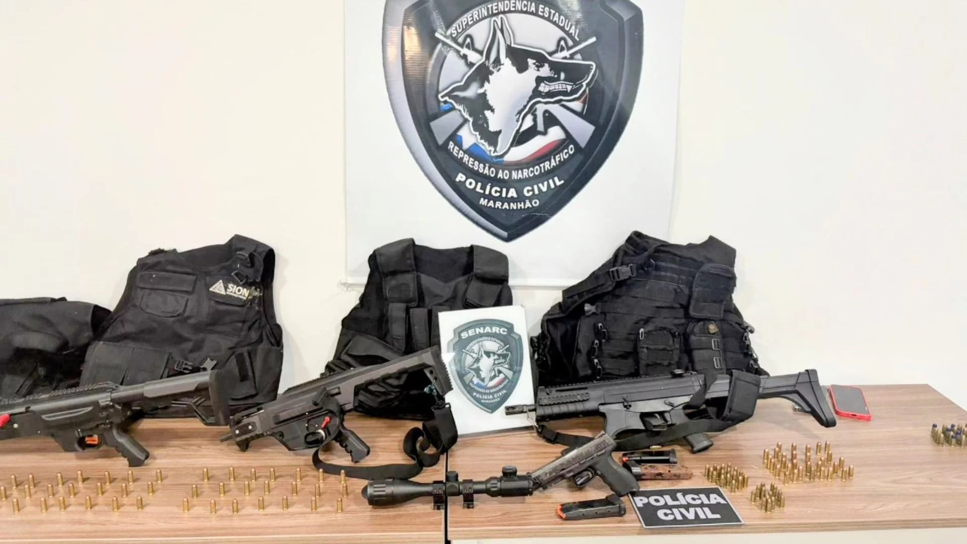 A Polícia Civil do Maranhão realizou, nesta terça-feira (3), em São Luís, uma operação que resultou na prisão de duas pessoas e na apreensão de armas de fogo de uso restrito, coletes balísticos, munições, veículos e outros materiais.