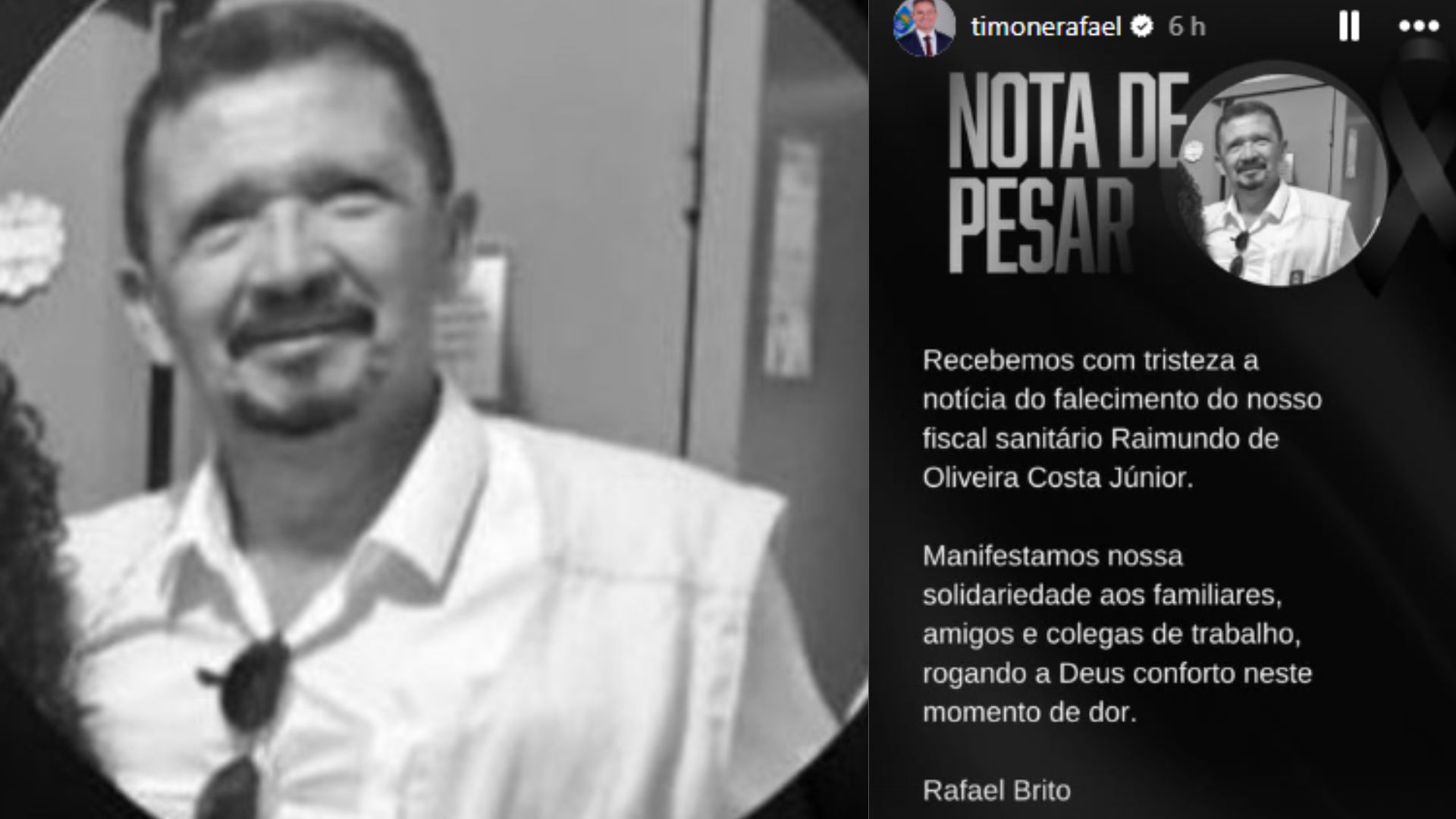 Em nota divulgada nas redes sociais, o prefeito de Timon, Rafael Brito, lamentou a morte do fiscal sanitário. “Recebemos com tristeza a notícia do falecimento do nosso fiscal sanitário Raimundo Oliveira Costa Júnior”, disse o gestor.