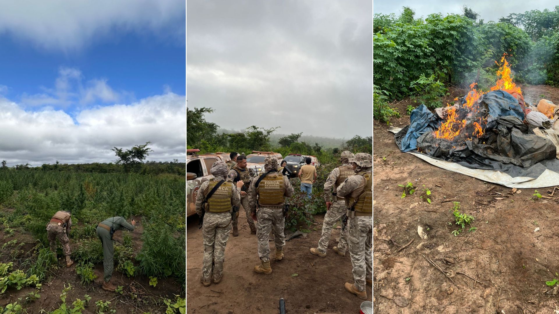 As equipes também encontraram mais de três plantações de maconha em estágio avançado, somando mais de 80 mil pés. Toda a plantação foi destruída no local, conforme os protocolos legais.